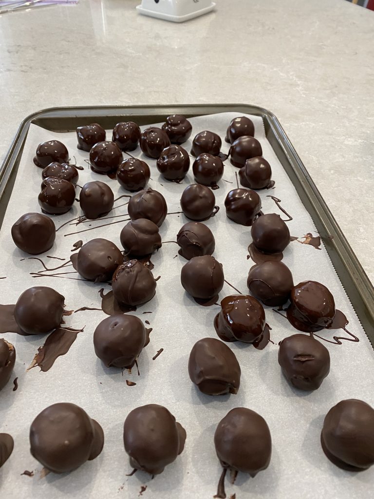 7. dans un petit bol enrobĂ© les bleuets de farine (pour empĂȘcher les bleuets de foirer