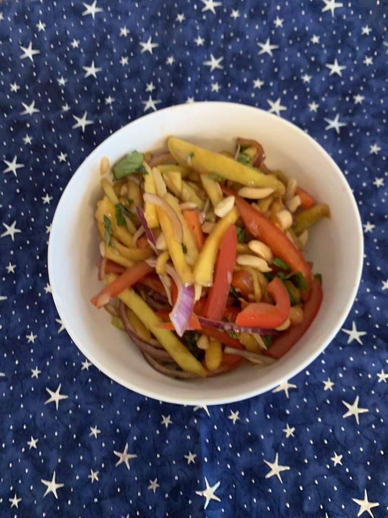 - 3 tasses (750 ml) mangue en fines lanières (environ 2 grosses mangues)
