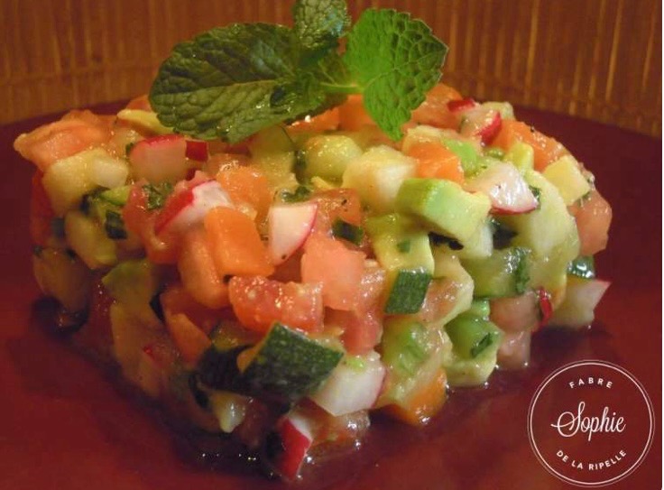 2. Couper les légumes du tartare en petits dés et les déposer dans un grand bol.